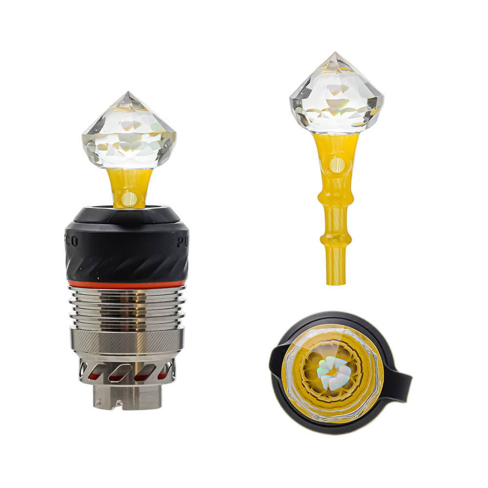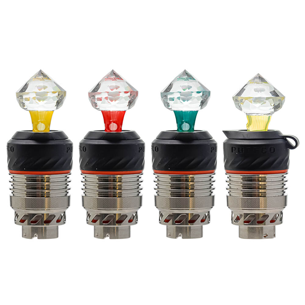 Crafted with precision and brilliance, the Diamond Cut Carb Cap Series for Puffco Peak Pro enhances your concentrate sessions with style and efficiency. Each carb cap features a stunning diamond-shaped glass top that refracts light beautifully, adding an elegant visual touch to your setup. Designed for optimal airflow control, these caps help retain heat longer and ensure even vaporization for a smoother, more flavorful experience. Available in multiple accent colors, they are perfect for personalizing your Puffco Peak Pro while elevating both performance and aesthetics. Durable, functional, and visually striking—this series delivers the perfect blend of art and utility for every dab enthusiast.