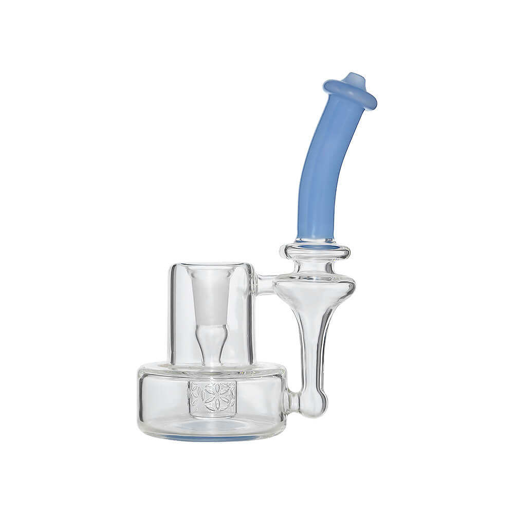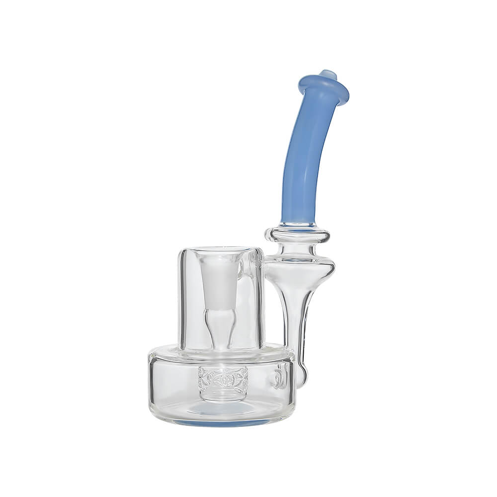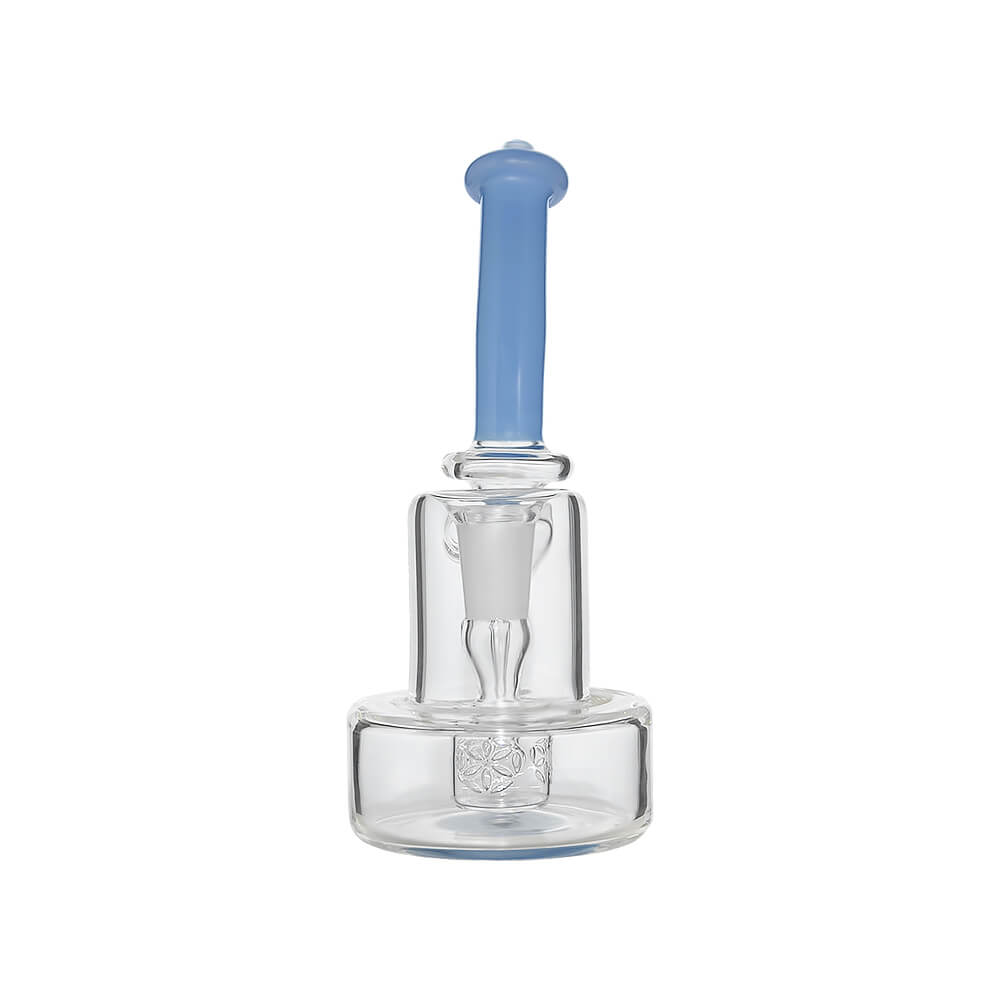 This dab rig stands out with its meticulously designed, intricate internal percolator that plays a crucial role in delivering exceptional filtration. As smoke passes through the precisely engineered percolator structure, it undergoes thorough diffusion and cooling, ensuring a remarkably smooth and refined experience for users. Complementing this functional excellence is the distinct colored mouthpiece, which not only adds a vibrant visual touch to the overall design but also offers a comfortable and ergonomic grip during use. Crafted from high-quality glass, the rig boasts durability while maintaining clarity, allowing users to observe the fascinating process of smoke filtration and movement within. Every aspect, from the complex percolator to the thoughtfully designed mouthpiece, is optimized to combine practical performance with aesthetic appeal, making it a standout piece for both enthusiasts and those seeking a premium dabbing experience.